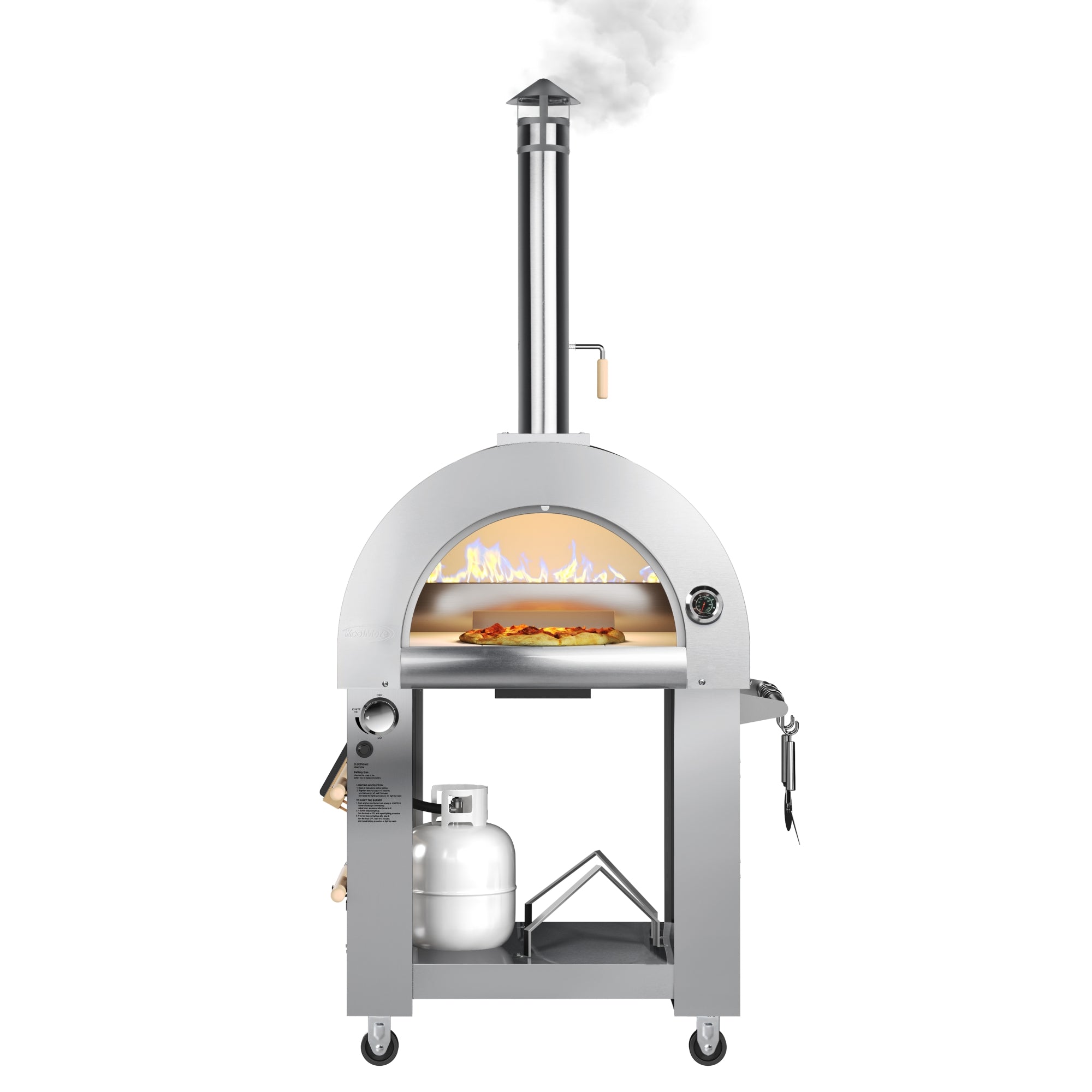If you love making pizza as much as we do you know there’s no chain store that makes pizza quite like you can make at home. But if you’re looking to really make exceptional pizza you know it’s all about having the right oven, and we don’t mean the one in your indoor kitchen. We created the KoolMore Dual Fuel, Wood and Propane Fired Outdoor Pizza Oven to let you craft classic Italian, Chicago, homestyle pizzas like a true professional right in your own backyard. This wood-burning oven with ceramic pizza stone gives you a place to craft pizzas for yourself, family, or friends with ease. And because it’s an all-in-one unit that offers all the amenities you need to do it like a pro, you’ll love finding new pizza combinations each and every week.