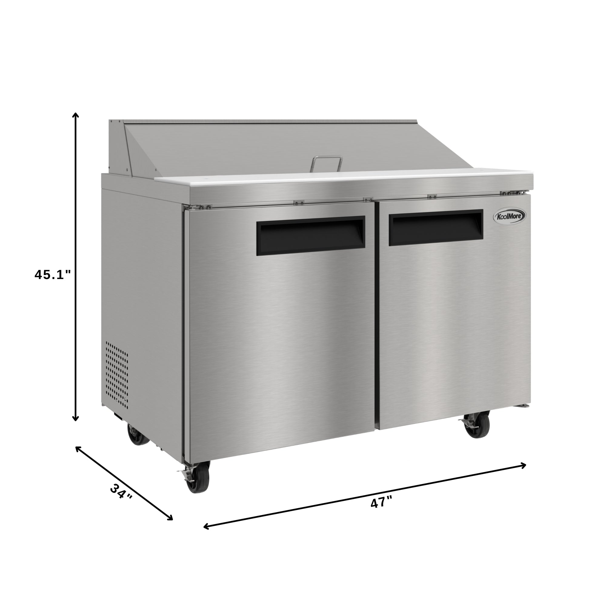 The KoolMore 46-In. Commercial Salad and Sandwich Prep Table is built for high-efficiency foodservice operations, combining cold storage and convenient prep space in a compact footprint.