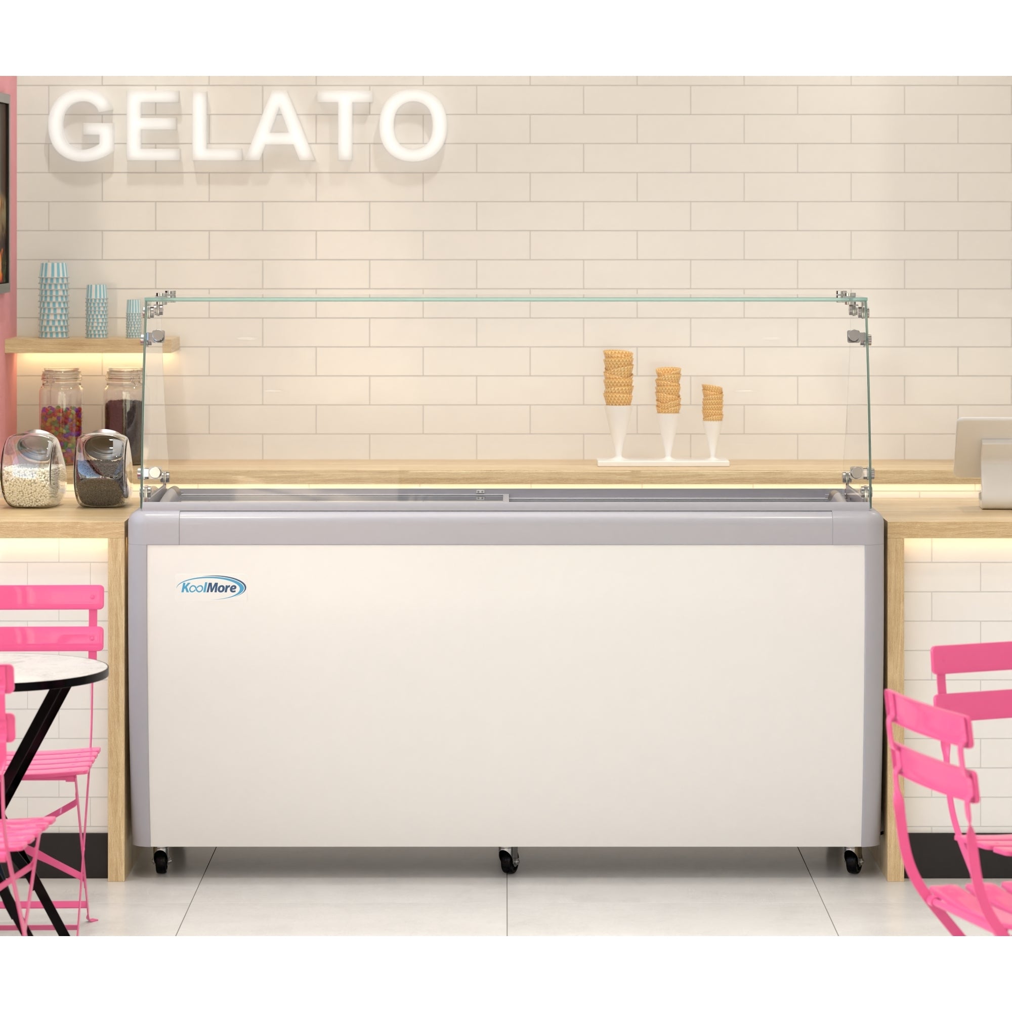 This Gelato Dipping Cabinet will help you store and serve Gelato with style; when the summer is at its peak, nothing helps cool you down faster than a delicious Gelato cone. If you're a small business, Gelato shop, or cafe, you want to be able to display your Gelato like a professional while also making it easier for customers and staff to get to the good stuff. Introducing the ultimate tool for serving and displaying your delicious gelato creations. The Gelato Dipping Cabinet. Our cabinet is designed to keep your gelato at the perfect serving temperature while showcasing your flavors to your customers. Its sleek and modern design will add a touch of elegance to any gelato shop, cafe, or restaurant. Made with Rust-Resistant steel walls, we want to maintain freshness and quality in your Gelato, so the interior walls on our stainless-steel dipping cabinet are pre-coated for rust and corrosion resistance. As an all-in-1 unit explicitly designed for Gelato, our free-standing dipping cabinet lets you store Gelato at just the right temperature, display it freely for all your customers to see, and then serve it up with less effort thanks to top-down access.