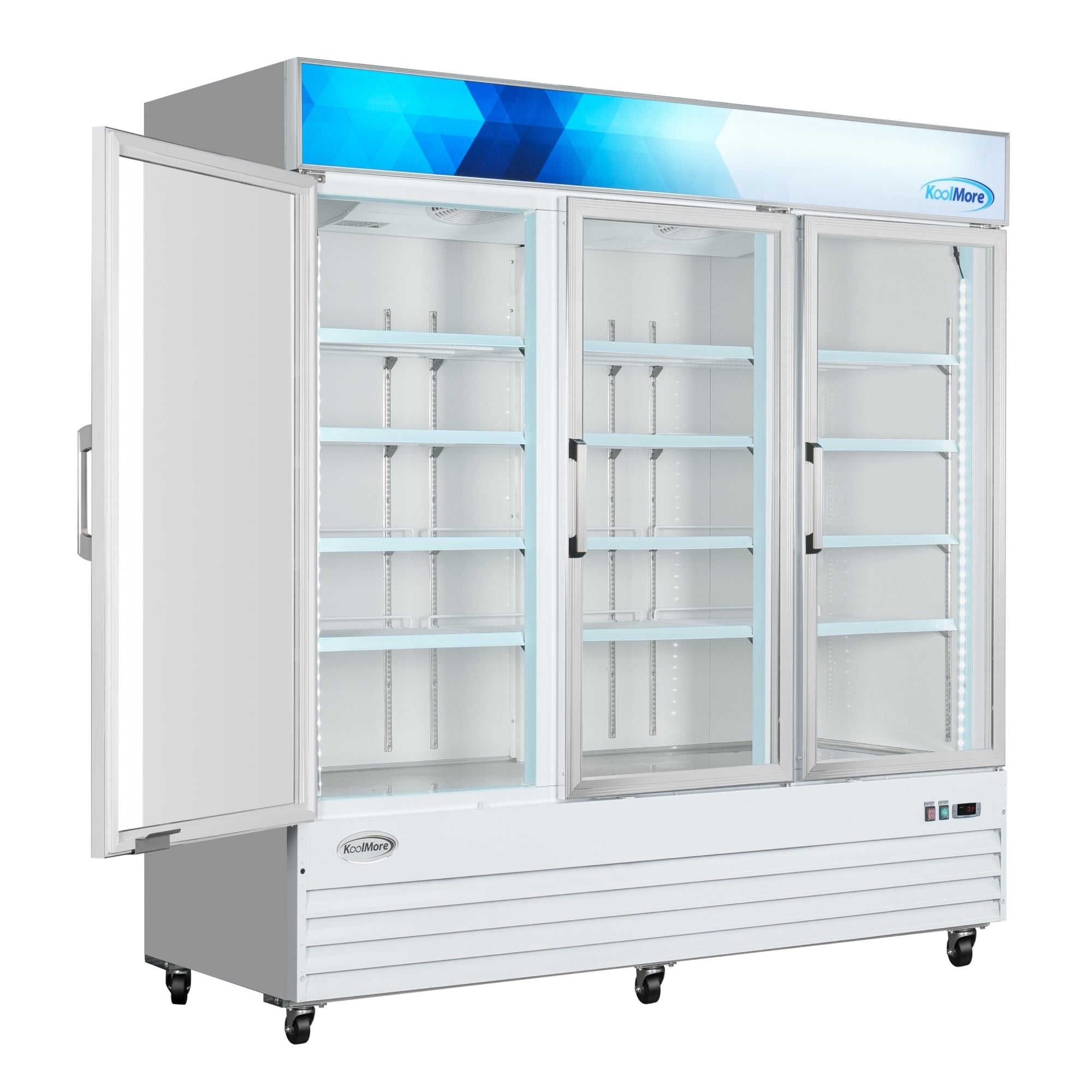 Introducing the KoolMore 3 Glass Door 52 cu. ft. Merchandiser Freezer: Where Elegance Meets Innovation! Elevate your display with our stunning Glass Door Merchandiser Freezer in white. Enjoy the perfect blend of aesthetics and functionality, showcasing your products while keeping them refreshingly cool. Captivating Design: The clear glass door adds sophistication, enticing customers with an enticing view of your offerings. Optimal Freshness: Advanced cooling technology preserves your items at the perfect temperature, maintaining their freshness for longer. Safety Assured: ELT Listed for safety and sanitation, our merchandiser keeps your products secure and compliant. Efficient and Sustainable: Designed for energy efficiency, this merchandiser is both environmentally friendly and cost-effective. Warranty You Can Trust: Backed by a 1-Year Parts and Labor Warranty, plus a 5-Year Compressor Warranty, your investment is secure. Elevate your brand and impress your customers with the KoolMore Glass Door Merchandiser Freezer. Upgrade your display today!